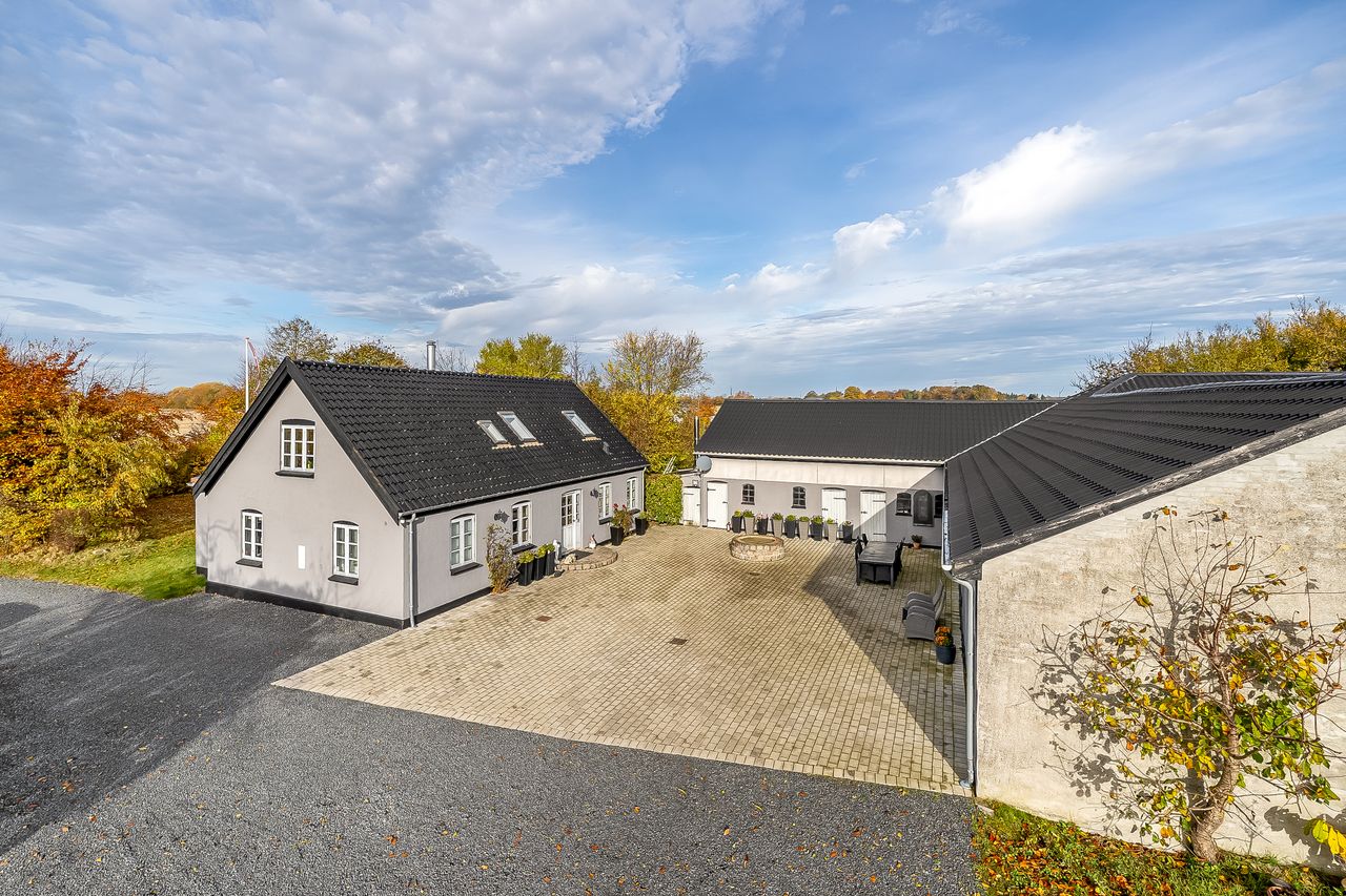 Flotte istandsatte bygninger. Flot Bolig på 172 kvm. med pudsede vægge, nyere sortglaseret tegltag og et moderne interiør. Boligen byder på: hall, stort flisebadeværelse med bruseniche, et stort landkøkken med masser af plads, spise-alrum med plankegulv og med udgang til haven, stor lys rummelig stue med karnap. 1. salen Forstue, toilet, 4 værelser. Centralvarmeanlæg med varmepumpe luft til vand. Bemærk Energimærke A2010. Solceller, der laver EL.