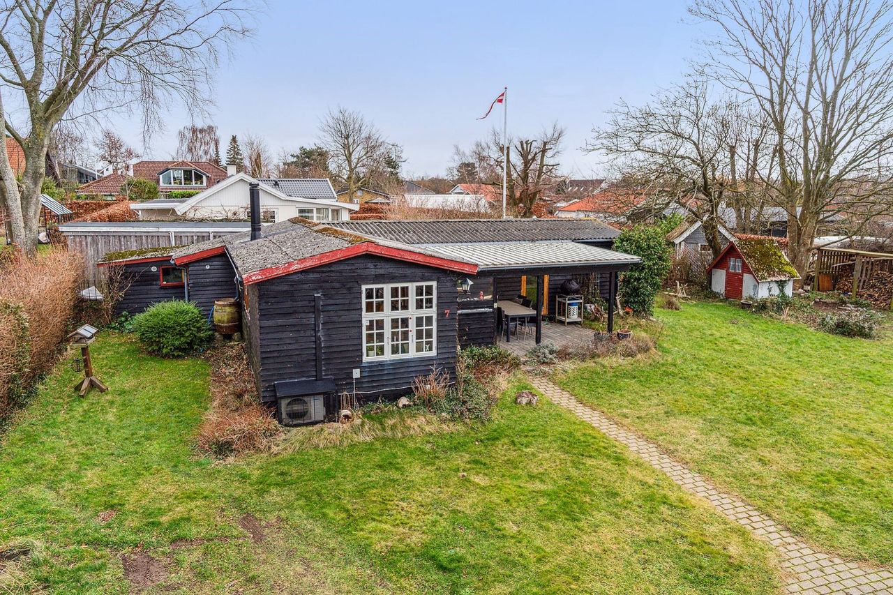 Skøn charmerende ældre have med fint kig mod fjorden, der står et ældre legehus i haven. Flere skønne