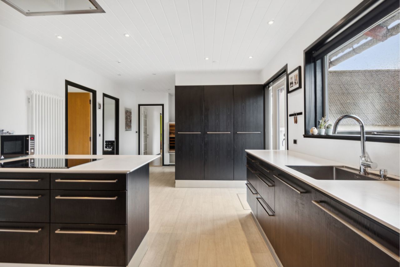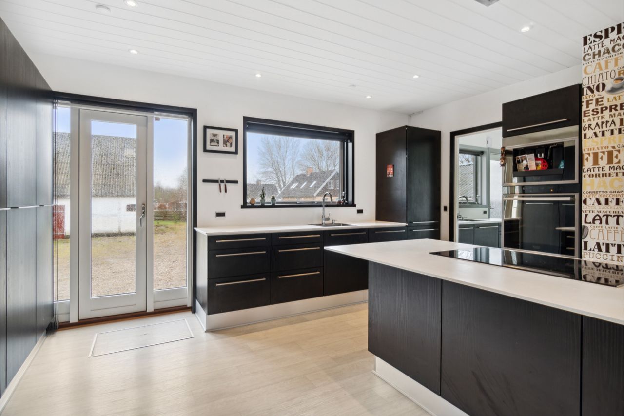 Designa køkkener med god plads, stor spiseplads, spots i loftet og med direkte udgang til gårdspladsen.
