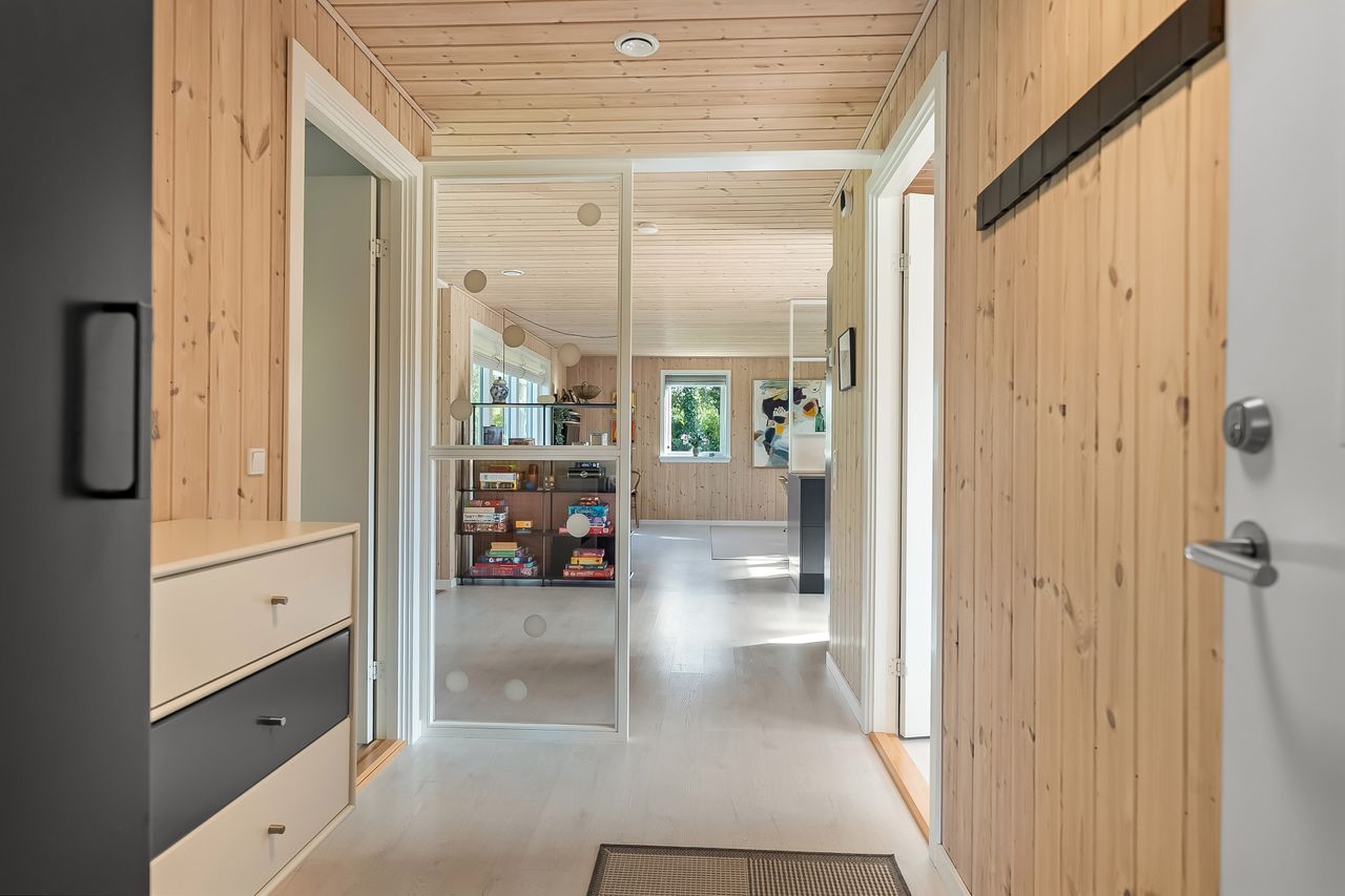Dette fine hus byder på: skøn entre med garderobe, Flot rummeligt forældre soveværelse med stor indbygget skabsvæg, Super flot badeværelse med skøn bruseniche og vaskesøjle. Super lys og lækker spiseafdeling med udgang til og med flot kig til haven.