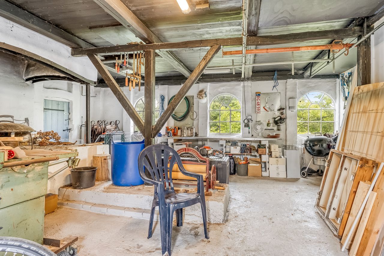 Stort rummelig værksted med gammel Esse / ildsted - værkstedet indeholder flere mindre rum.