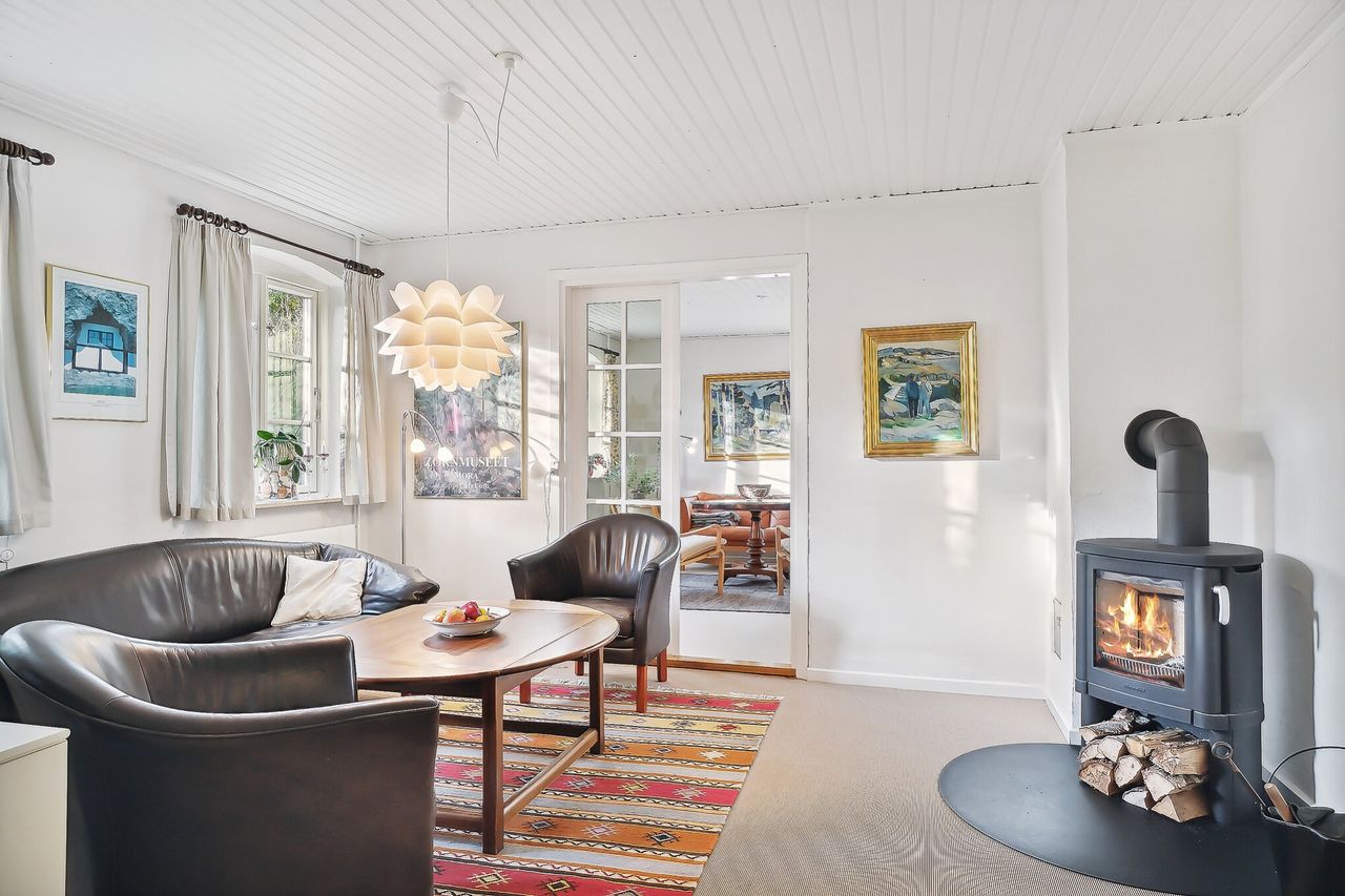 2 skønne stue og en dejlig brændeovn, et meget stort værelse, et moderne badeværelse, et funktionelt