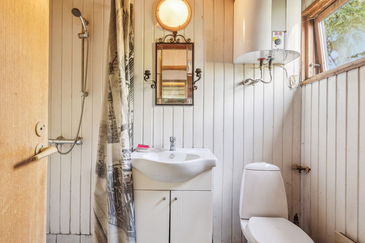 udestue, tilligemed varmepumpe og brændeovn til de lange vinteraftener.