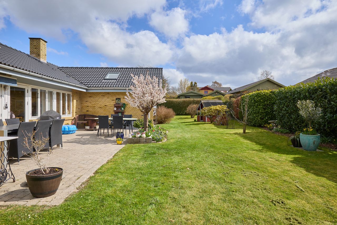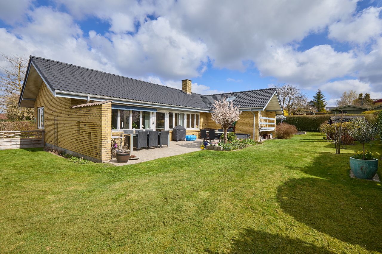 Denne fine villa byder på: fint badeværelse med kar/bruseniche og gulvvarme, 3 gode værelser, et stort forældresoveværelse med loft til kip, skabsgang, fint hvidt køkken i forbindelse med spise-alrum, samt lys opholdsstue med udgang til solterrassen. Underetagen fremstår lys og "beboelig", indeholder: Viktualierum, skabsgang, badeværelse med bruseniche og gulvvarme, en stor gildesal incl. fyrrum, samt et stort vaske-tørrerum.