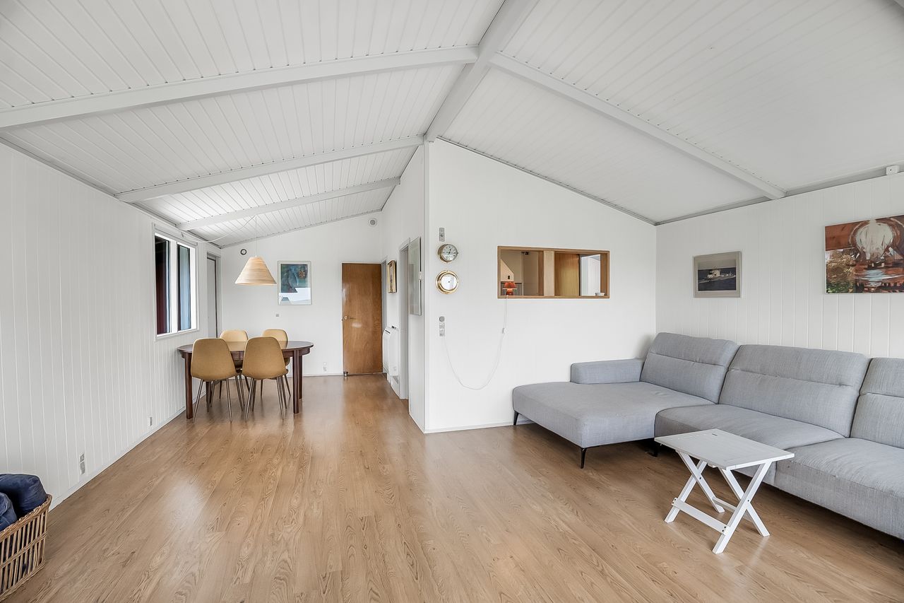 Dette skønne sommerhus, der er opført i træ og med eternittag, byder på: stue med loft til kip og med kig til fjorden, et lille hyggeligt køkken, entre, mellemgang, ældre flisebadeværelse med bruseniche, et stort soveværelse med indbyggede skabe (kan opdeles i 2 værelser).
