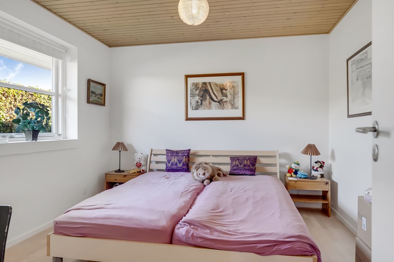Ejendommen indeholder, rummeligt bryggers med vaskesølje og håndvask. Pænt klinkebelagt gæsteentre. Stort værelse med skabe og parketgulv. Rummelig værelse / kontor med kig til haven. Flot gæstetoilet med brus. Lyst og rummelig køkken med stort køkken/alrum / spiseplads. her er der lækkert nyere ovenlys og dobbelt direkte udgang til det skønne overdækkede terrasse miljø.