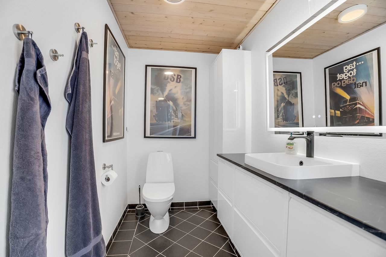 Nyere flot badeværelse med bruseniche og gulvvarme (vandbåren).
