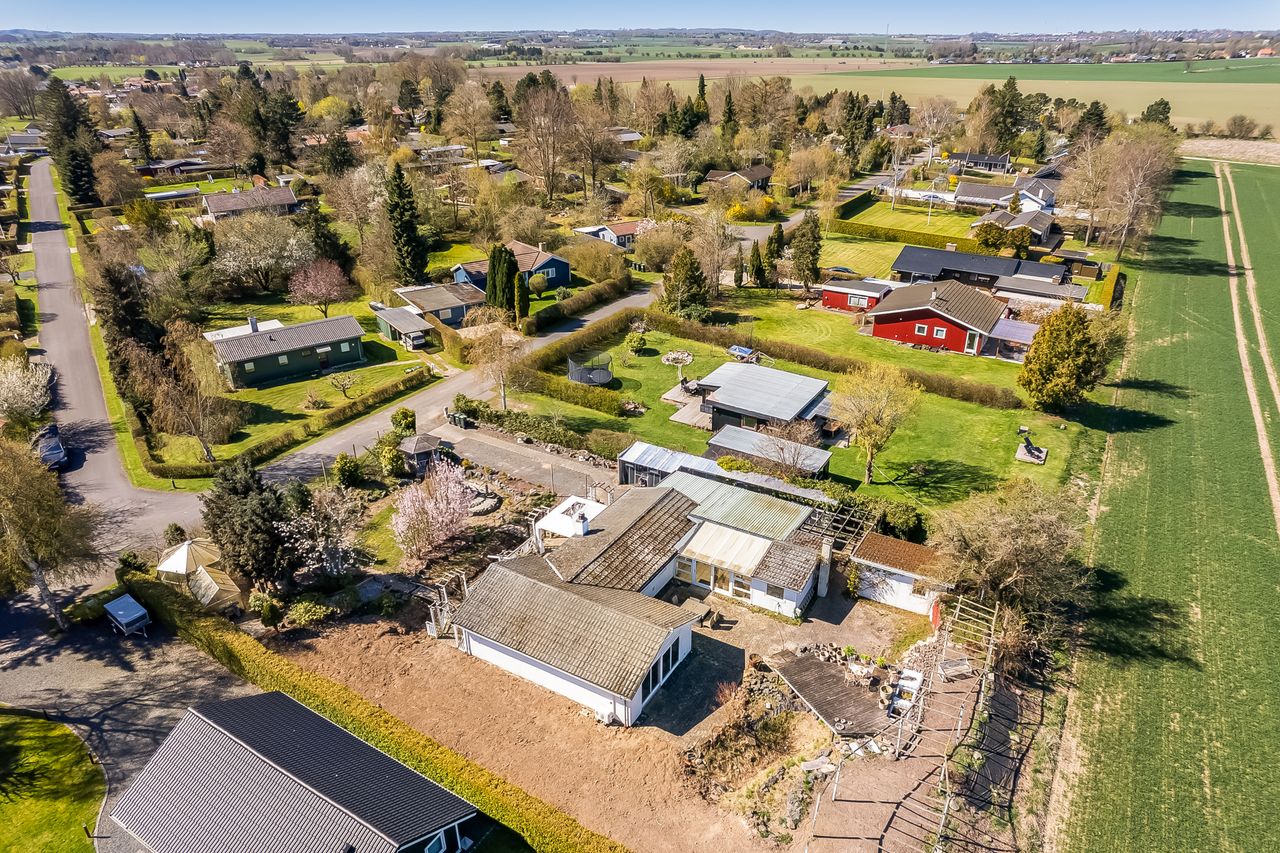 Der forefindes flere fuglevoliere på martriklen samt rummeligt udhus & carport