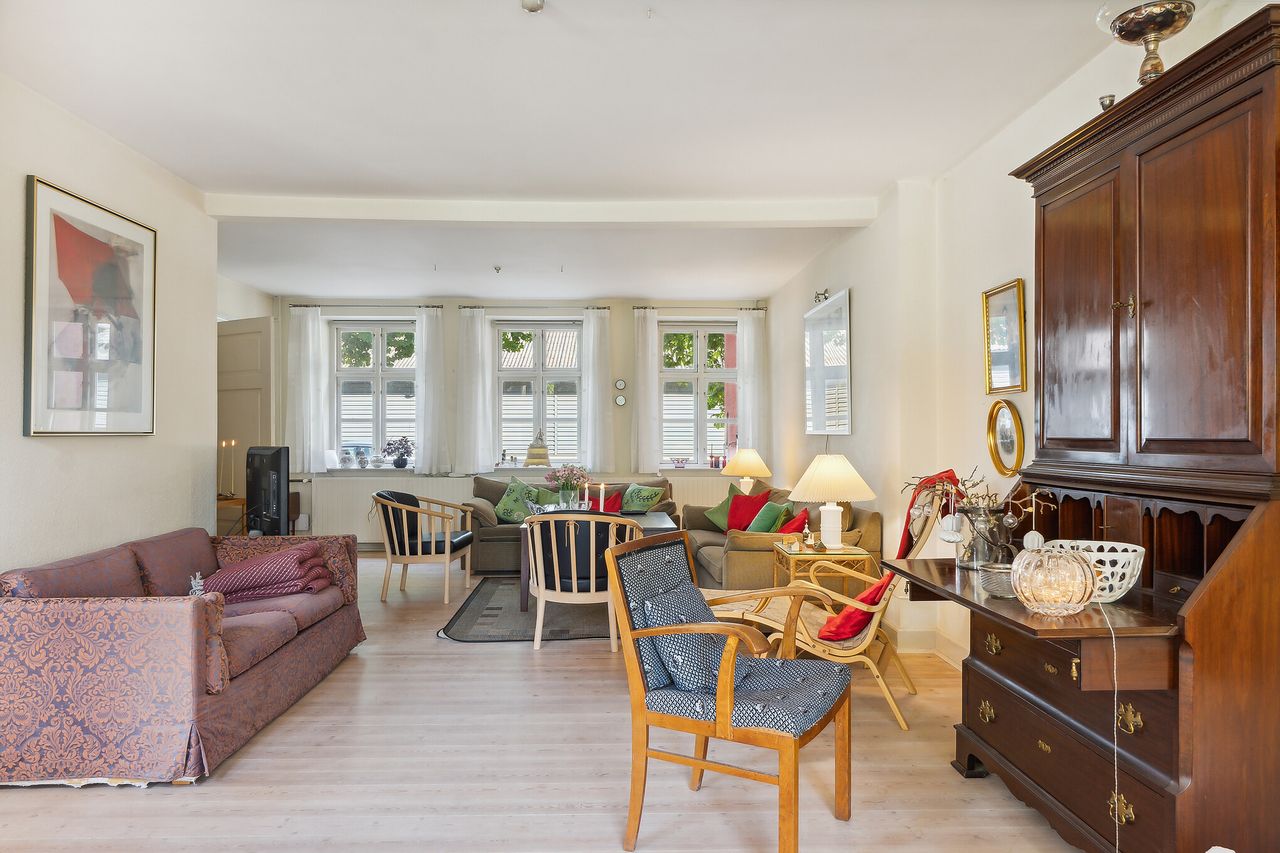 Indenfor bydes på skønne højloftede rum, plankegulve, flotte vinduespartier , træpaneler mange steder.