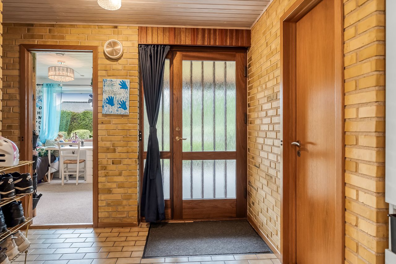 Huset indeholder: Rummelig entre med klinker, Pænt gæstetoilet, Børneværelse med støbt gulv. Fint badeværelse med brus og sauna. 2 gode børneværelser.