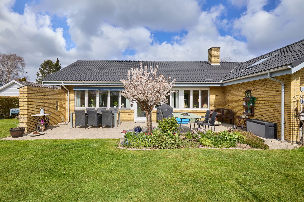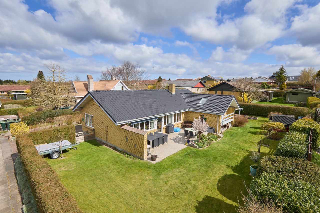 Denne fine villa byder på: fint badeværelse med kar/bruseniche og gulvvarme, 3 gode værelser, et stort forældresoveværelse med loft til kip, skabsgang, fint hvidt køkken i forbindelse med spise-alrum, samt lys opholdsstue med udgang til solterrassen. Underetagen fremstår lys og "beboelig", indeholder: Viktualierum, skabsgang, badeværelse med bruseniche og gulvvarme, en stor gildesal incl. fyrrum, samt et stort vaske-tørrerum.